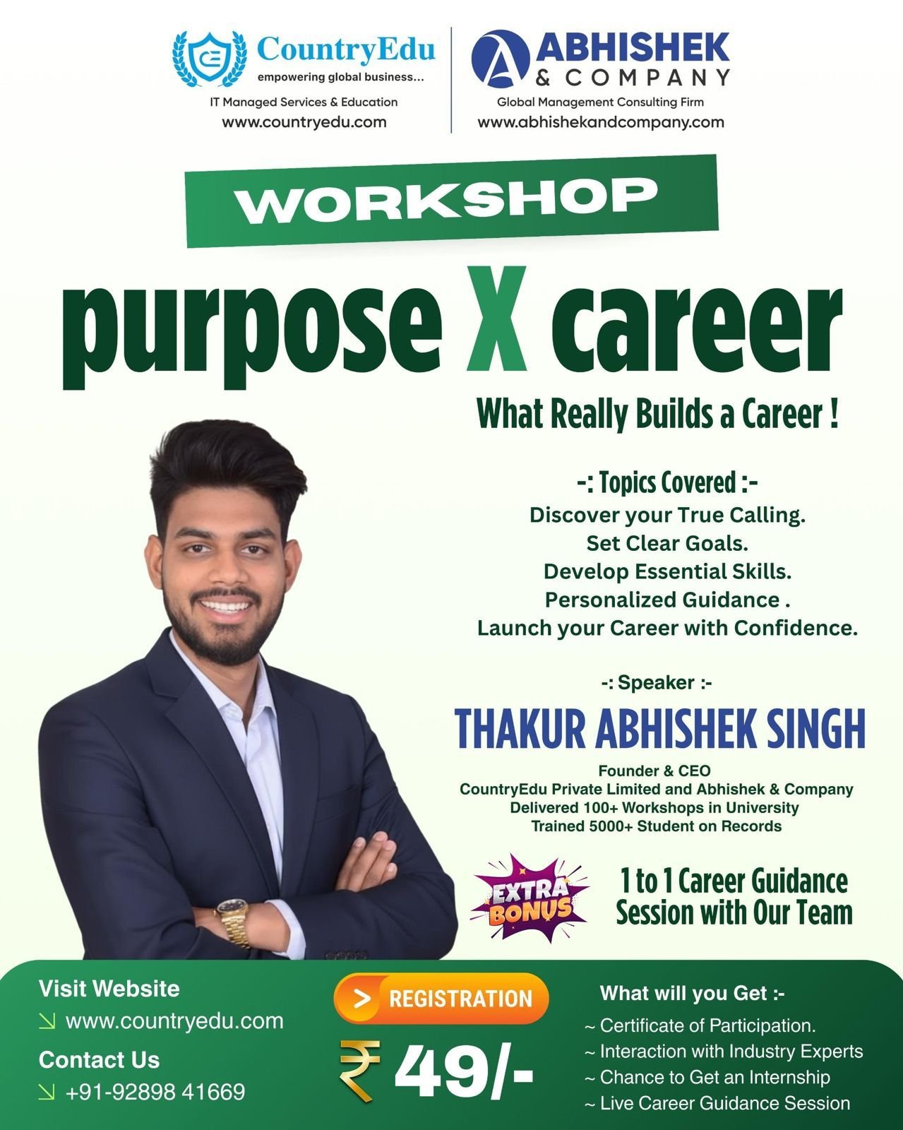 ✔ Discover Your True Calling ✔ Career Planning Strategy ✔ Skill Development Roadmap ✔ Personalized Career Guidance ✔ Hands-on Assignment ✔ Internship Opportunity
